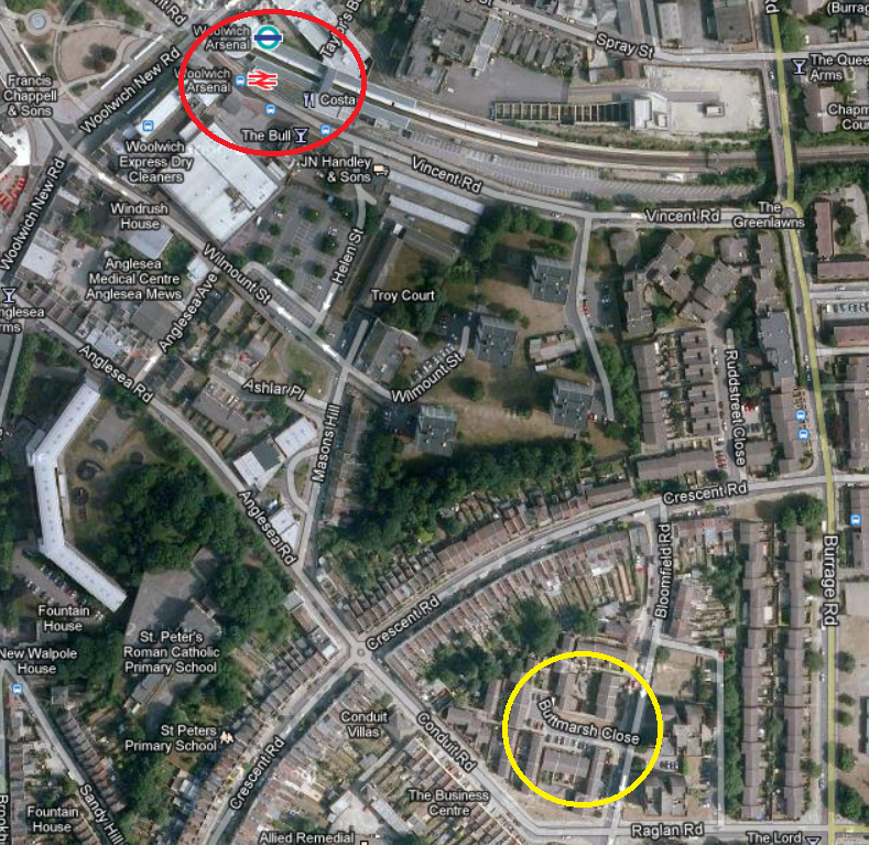 I live in Buttmarsh Close, Woolwich, SE18 7JA